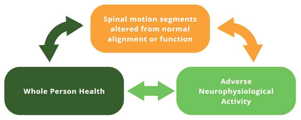 A chiropractic vertebral subluxation is a potentially reversible or preventable alteration of spinal motion segments from normal alignment or function associated with adverse neurophysiological activity that can be connected to whole person health.