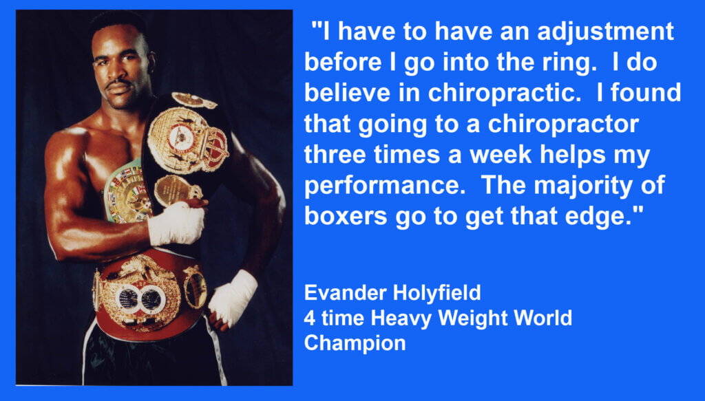Evander Holyfield – I do believe in chiropractic. I found that going to my chiropractor three times a week helps my performance. The majority of boxers go to get that edge
