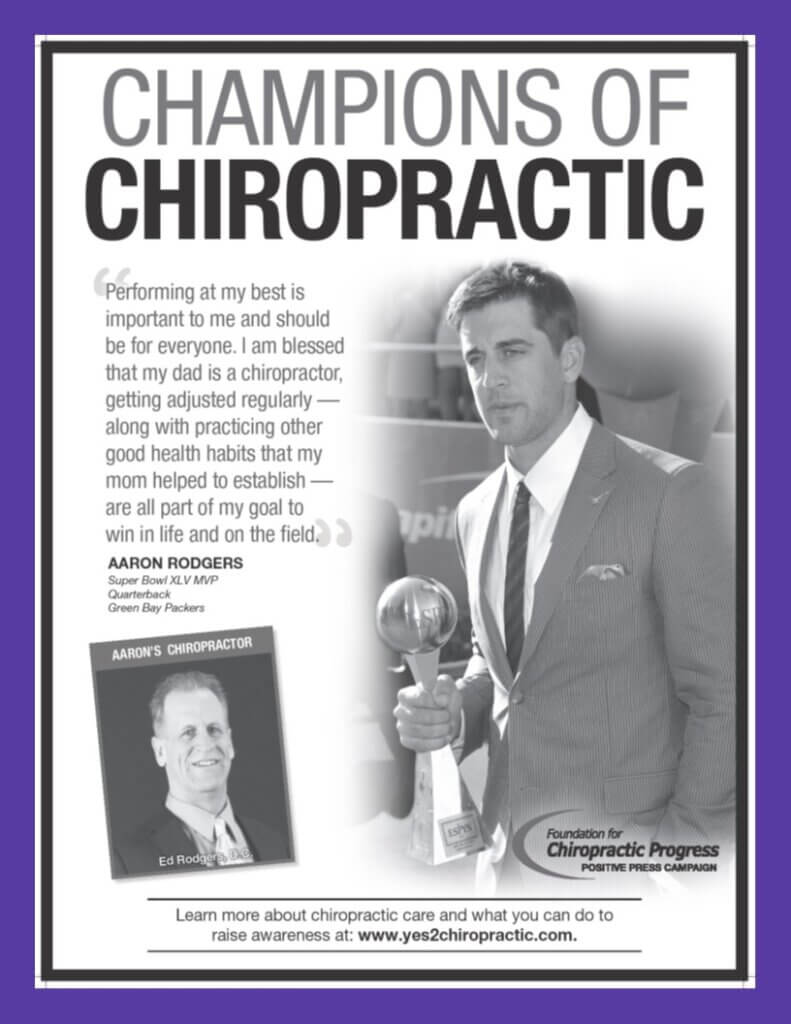 Tiger Woods – I’ve been going to a Chiropractor for as long as I can remember. It is as important to my training as the practice of my swing.